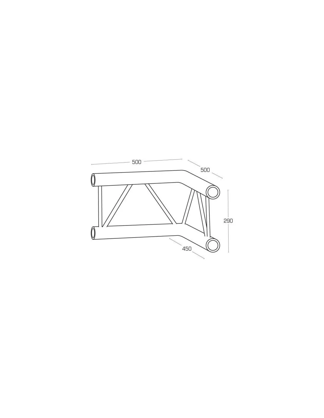 Ángulo a 90º. Truss de aluminio de lado 29 cm. en orientación vertical.