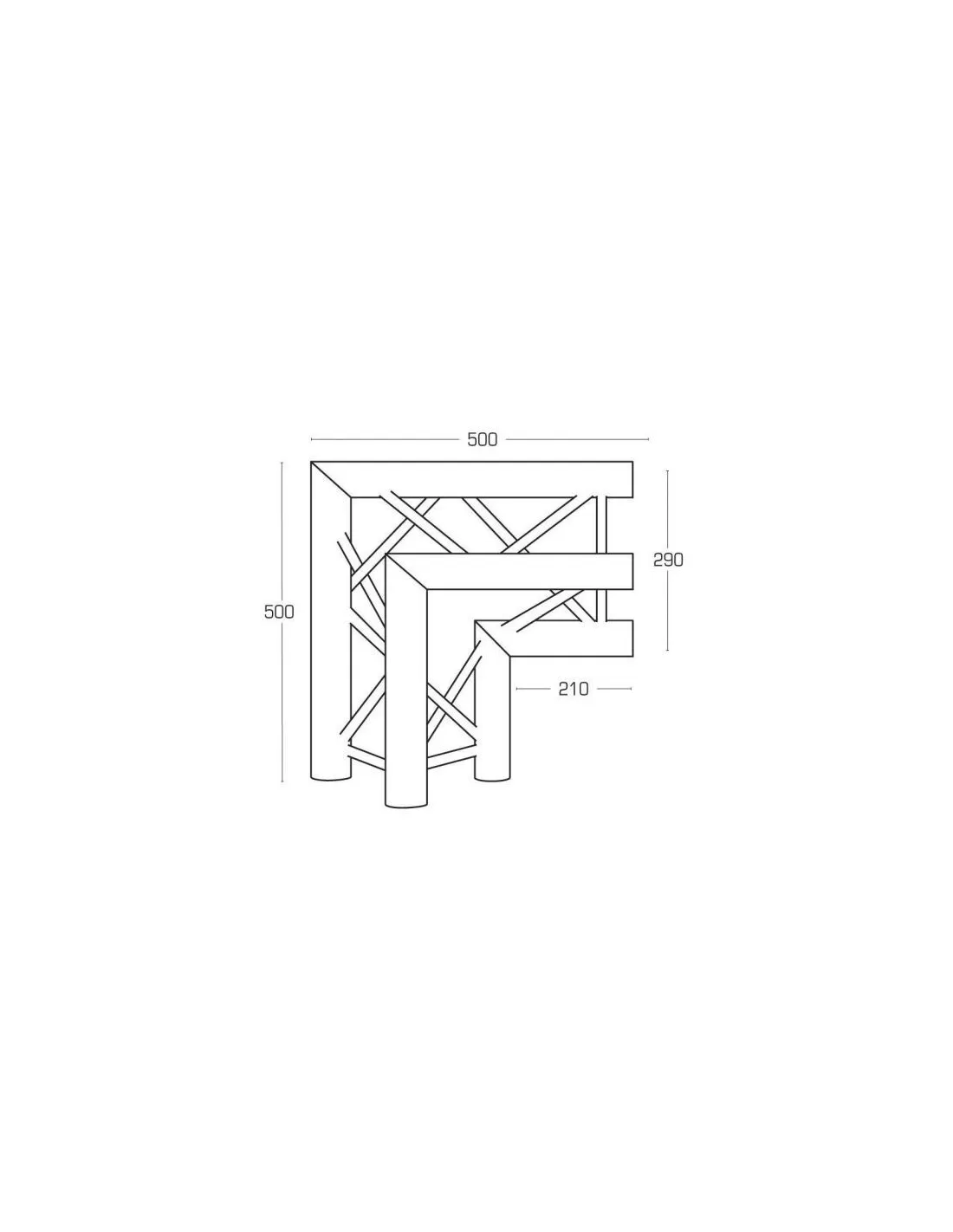 Ángulo a 90º. Truss de aluminio de lado 29 cm.